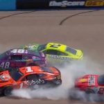 Later in the race, Logano’s own challenging day culminated in another incident. While battling three-wide for position, he made contact with AJ Allmendinger in the same section of the track. This contact sent Logano into a spin, sliding down to the apron before rejoining the racing surface. In the process, he collected Daniel Suarez in the No. 99 Chevrolet and Josh Berry in the No. 41 Ford. All three drivers were forced to retire from the race due to the damage.